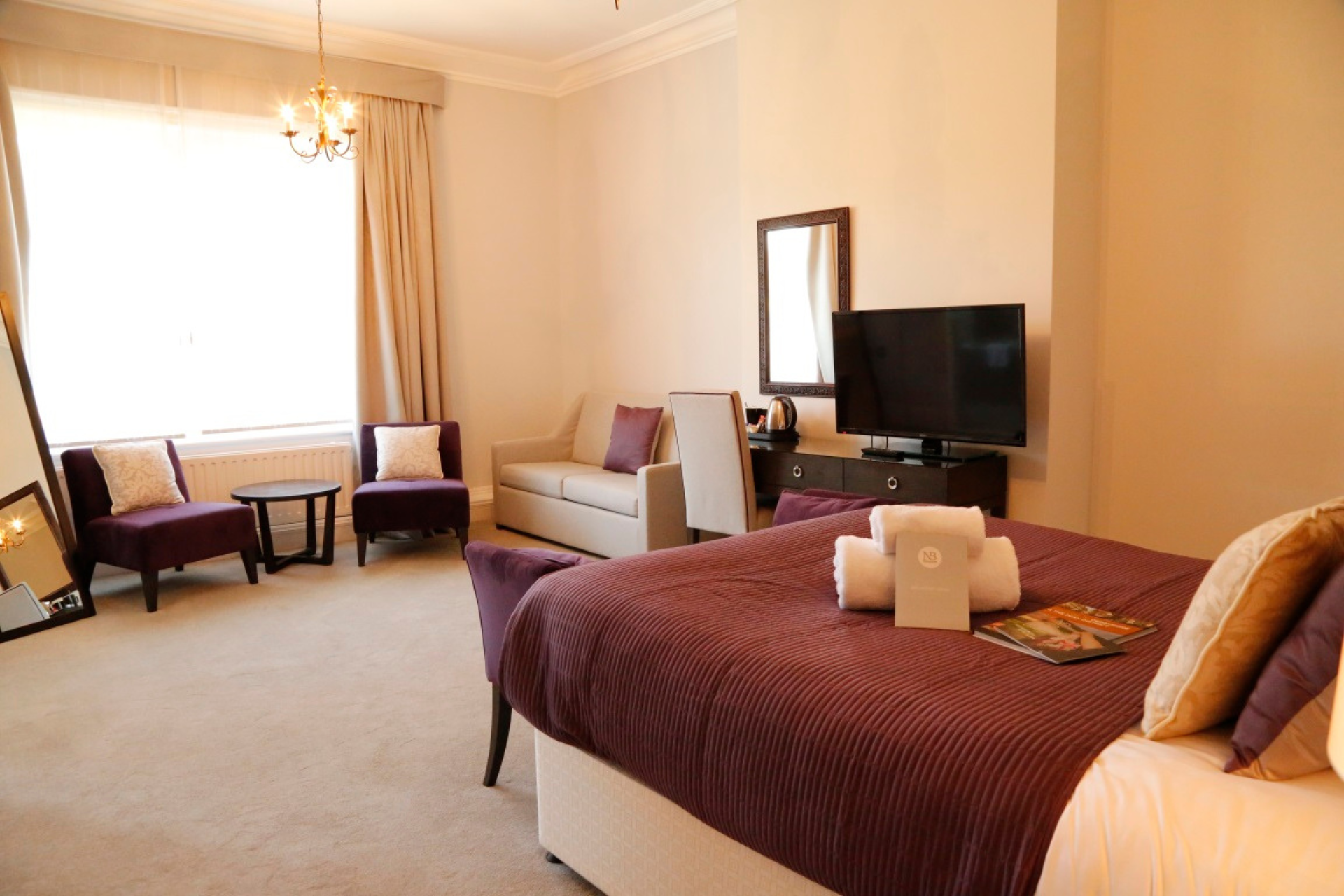 Each Junior Suite has an additional lounge area with a sofa / sofa bed in the suite to relax and take in the views. All our suites have modern, beautifully appointed bathrooms with complimentary toiletries. The room also includes free Wi-Fi, TV, bottled water, hairdryer and complimentary tea and coffee making facilities.